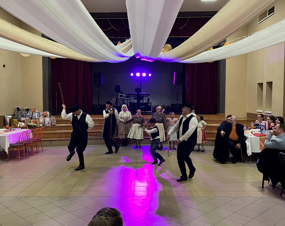 A mulatság a helyi művelődési házban zajlott, ahol már a kora délutáni órákban megtelt a terem vidám hangulatú emberekkel. A