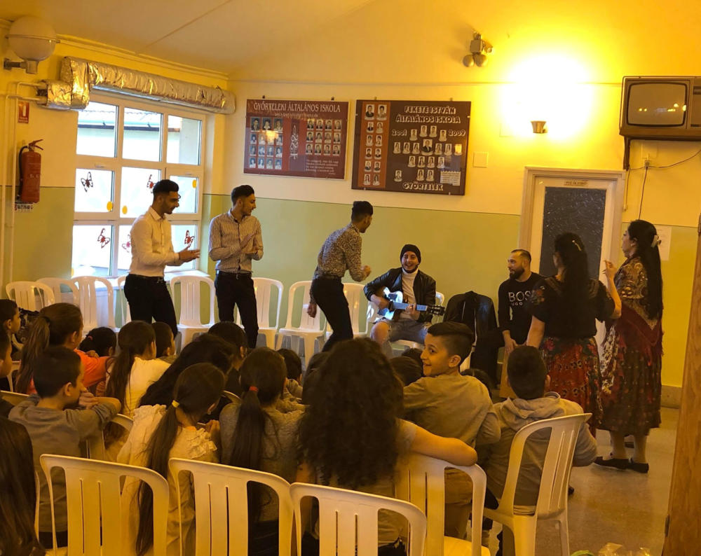 Családi nap, Győrtelek - 2019. február 21.2019.02.21-én családi nap került megrendezésre Győrtelken az általános iskolában. Délelőtt kerekasztal beszélgetést tartottunk a helyi közösségek és kisebbségek helyzetéről a helyi intézmények, szervezetek, szakemberek és érdeklődők részvételével. A beszélgetés során a helyi résztvevők elmondták, hogy sokkal több kulturális programra lenne szükség, főleg olyanokra, amik a romák hagyományait és szokásait mutatja be. Az identitás erősítése fontos lenne a cigány közösségben. Ha ismernék a gyökereiket, azt, hogy honnan származnak, akkor megerősödne bennük az, hogy ők is értékesek, nem gyökértelen nép. Szociális szempontból is le van maradva a település, hiszen a lakás-és életkörülmények, a helyi gazdaság és munkaerő-piaci, valamint infrastruktúra és környezeti mutatók elmaradnak más települések mutatóitól. Jellemző, hogy közmunkából próbálnak megélni a családok, ami bizonytalan anyagi helyzetet teremt, és az állandó bizonytalanság sok feszültséget és problémát okoz a családoknak. Ezek a problémák az összes bevont településre jellemzőek, és minden kerekasztal megbeszélésen elsősorban ezek merülnek fel. Abban nagyrészt mindenki egyetértett, hogy a megoldást a hagyományok és szokások ismerete, őrzése és továbbadása jelenthetné, hiszen azok egyfajta keretet biztosítanának a cigány közösségnek, és bizonyos szabályrendszerével biztosíthatná a jobb együttműködést és együttélést a többségi társadalommal. Másrészt kaphatnának segítséget abban, hogyan kell felkészülni egy állásinterjúra, vagy hogyan kell megírni egy önéletrajzot, amivel nagyobb esély lenne egy jobb munka megszerzésére. A rendezvényt Bernáth Lajos, az általános iskola igazgatója nyitotta meg. Elmondta, hogy nagyon örül annak, hogy ilyen programok is megjelennek az iskolában, különösen azért, mert lovári nyelvet is oktatnak, tehát a roma kisebbség és hagyományaik kiemelten fontosak számukra.A rendezvény folytatásaként a Vazdune Cherhaja Emelkedő Csillagok Roma Nők Egyesületének képviseletében Murguly László Csabáné mondott köszöntőt, és ismertette a projektet. Az ismertető után Kovács Antal Máté és Balogh Zsolt Noé produkciója következett, akiket itt is jól ismernek. A zenészek a cigányság történetét a zenén keresztül mesélték el a közönségnek, több országból játszottak cigány zenét, majd Budapesten át eljutottak a szatmári tájegység cigány zenéihez. A fiúk nagyon jó hangulatot teremtettek. A fiúk után a Nagyecsedi Gyöngyszemek Hagyományőrző Cigánytánc Együttes műsora következett.A tánc után családi vetélkedő zajlott, ahol 8 csapat, szülők és gyerekek közösen mérték össze tudásukat.A rendezvény zárásaként táncházat tartottunk a Nagyecsedi Gyöngyszemek Hagyományőrző Cigánytánc Együttes segítségével.A rendezvény nagyon jól sikerült, kellemes tapasztalatokkal gazdagodtunk. Úgy gondolom, hogy a vendégek örültek, hogy színes kulturális műsorral szolgáltunk, és kölcsönösen új ismeretekkel gazdagodtunk.
